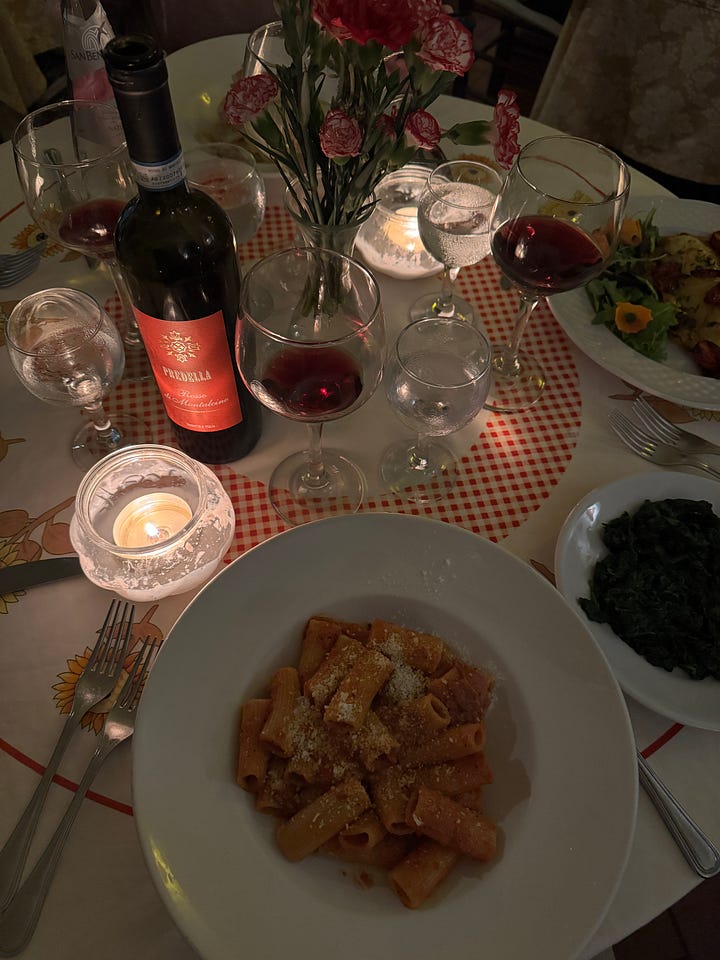 We also tried Nero Buono, another native grape that produces a medium-bodied wine with black fruit aromas. It’s one of those rare teinturiers, aka a grape with red skins AND juice (rather than a typical red wine grape that has clear juices) — this results in the wine’s characteristically deep color. We paired this with braised beef and amatriciana (surprise, surprise), and it was the perfect palate cleanser — bold enough to stand up to the meal with just enough tannins to cut through the fat on the table.